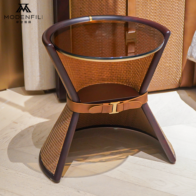 Add a touch of natural elegance to your bedroom with the MODENFILI SM007 modern rattan nightstand. This nightstand features a beautiful woven rattan design that brings a sense of warmth and texture to your space, combined with a sleek, dark wood frame that adds a contemporary feel. The SM007 model includes a clear glass top that provides a smooth surface for your bedside essentials, while the rattan body offers a unique aesthetic that complements both modern and tropical decors. Its compact size makes it perfect for placing next to your bed, offering convenient storage for books, lamps, or personal items. Enhance your bedroom with the MODENFILI SM007 nightstand, where style meets functionality in a harmonious blend of materials.