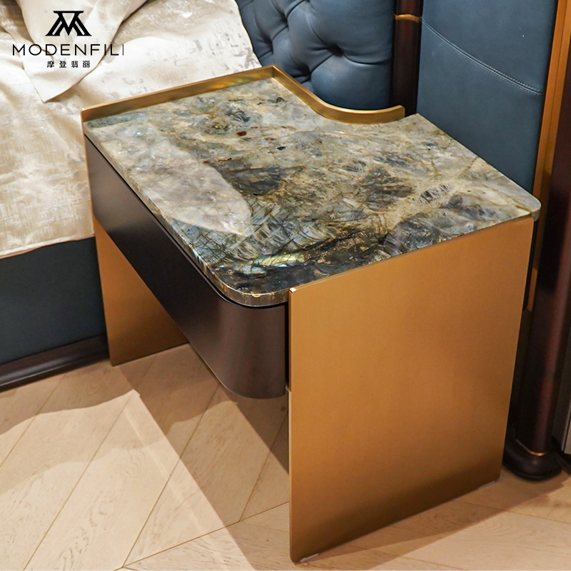 Transform your bedroom with the MODENFILI SM009 nightstand, featuring an exquisite marble top that exudes luxury and elegance. This nightstand combines the natural beauty of marble with a sleek, gold-toned base, creating a harmonious blend of classic and contemporary styles. The SM009 model is perfect for those seeking a statement piece that offers both functionality and sophistication. Its spacious top surface is ideal for keeping essential items within reach, while the sturdy base ensures stability and durability. Elevate your bedroom decor with the MODENFILI SM009 nightstand, where high-end design meets practical comfort.