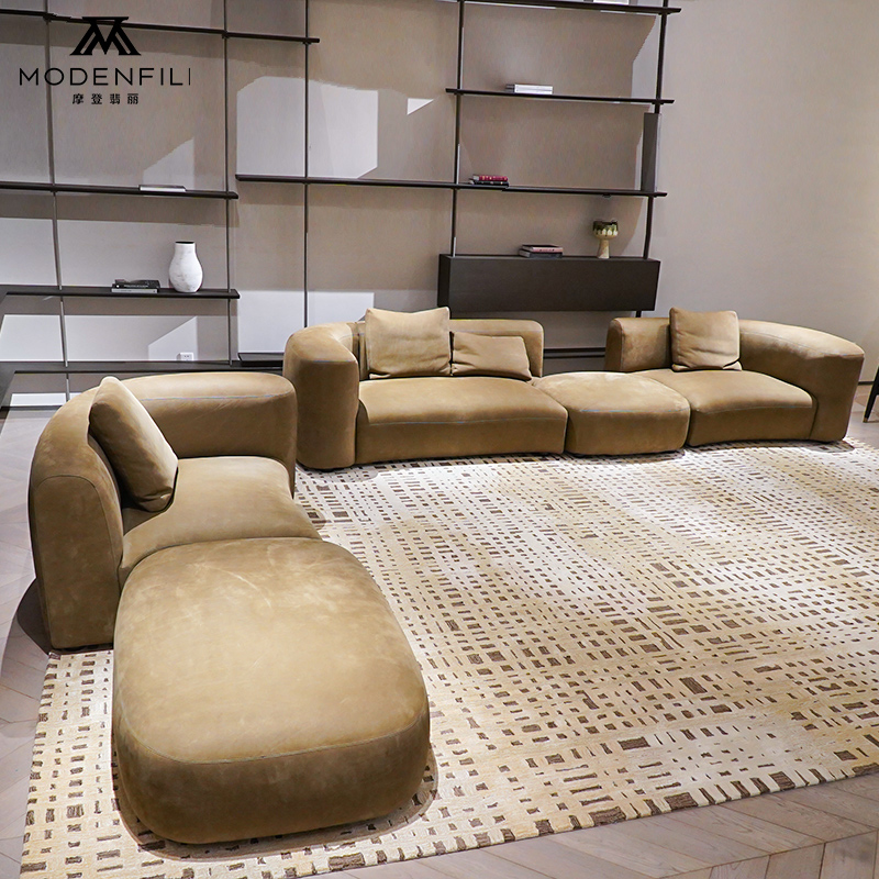 Upgrade your living room with the MODENFILI V2205 modern sectional sofa, designed for both comfort and style. This sectional sofa features a plush, tan upholstery that adds warmth and sophistication to your space. The V2205 model is crafted with a contemporary design that includes ample seating and soft, supportive cushions, making it perfect for lounging, entertaining, or simply relaxing at home. Its modular design allows for flexibility in arrangement, fitting well in various room layouts. The MODENFILI V2205 sofa offers a luxurious seating experience that enhances the aesthetic of any modern living area. Discover the perfect blend of comfort and design with the MODENFILI V2205 sectional sofa.