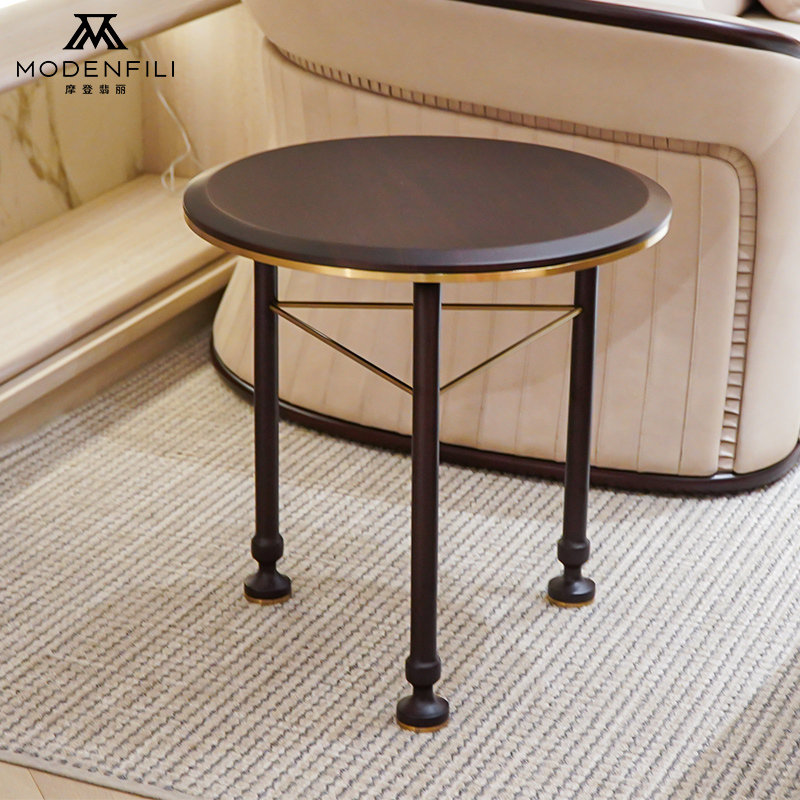 The MODENFILI SM001-2 round coffee table is a perfect blend of classic elegance and modern sophistication. This exquisite piece features a rich, dark wood finish that is complemented by tasteful brass accents, creating a striking visual contrast. The table's round design and sturdy, turned legs offer both stability and a touch of traditional charm, while the brass trim adds a contemporary flair that elevates any living space. The SM001-2 is not merely a table; it's a centerpiece that invites conversation and adds warmth to your home. Its spacious surface is ideal for displaying decorative items or holding drinks and snacks during social gatherings. The craftsmanship of the SM001-2 ensures durability and longevity, making it a worthwhile investment for those who appreciate fine furniture. Whether you're furnishing a cozy den or an upscale lounge, this table is designed to impress and provide years of enjoyment. The MODENFILI SM001-2 is more than just furniture; it's a statement of style and quality that enhances the ambiance of your living area.