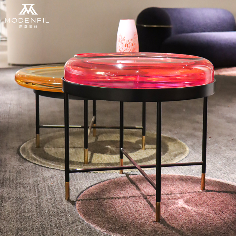 The MODENFILI V2216H5 side table is a striking addition to any contemporary interior, combining the vibrancy of colored acrylic with the sleekness of metal accents. This table features a bold, red acrylic top that offers a glossy finish, reflecting light and adding a pop of color to your space. The transparency and color of the acrylic create a unique visual effect, making the table appear light and airy despite its sturdy construction. The table's base is crafted from metal with a black finish and gold accents, providing a stable foundation while adding an element of luxury. The slender legs and crossed support bars give the table a delicate appearance, enhancing its modern appeal. The V2216H5 is perfect for use as an accent table in living rooms, bedrooms, or offices, offering a surface for displaying decorative items, holding drinks, or serving as a workspace. Its compact size makes it ideal for small spaces or as a complement to larger furniture pieces. The MODENFILI V2216H5 side table is designed for those who appreciate modern design and wish to incorporate colorful, functional elements into their home decor. Its combination of materials and colors makes it a versatile piece that can adapt to various styles, from minimalist to eclectic. Whether you're looking to add a touch of color to your living space or need a functional side table, the V2216H5 is an excellent choice that offers both style and utility.