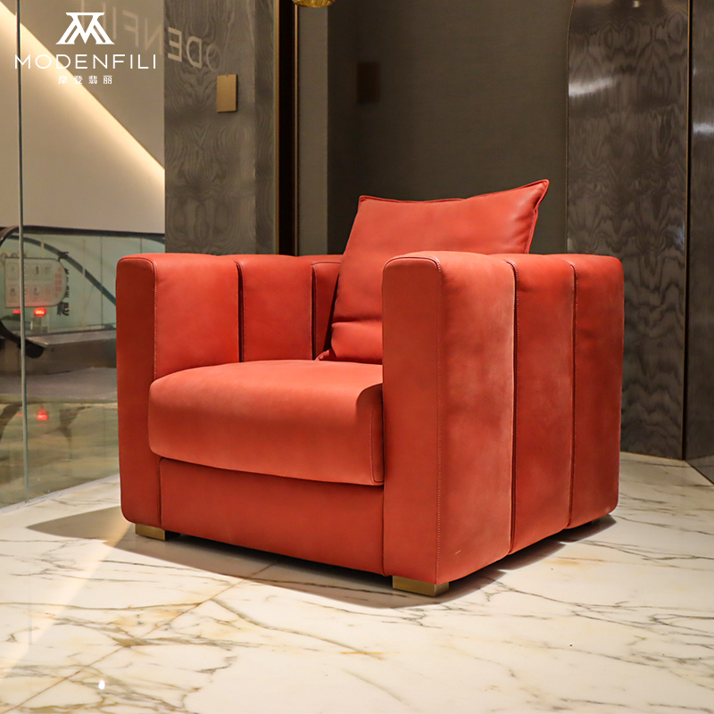 The MODENFILI M0285 modern armchair is a perfect blend of comfort and contemporary design, making it an ideal addition to any living room or lounge area. This armchair features a bold red upholstery that adds a vibrant touch to your decor, while its plush cushions provide the ultimate in relaxation. The M0285 is designed with a sleek silhouette that complements modern interiors, featuring clean lines and a minimalist aesthetic that is both stylish and timeless. The armchair's sturdy frame ensures durability and stability, while the soft fabric upholstery adds a touch of luxury to the overall design. This armchair is not just a piece of furniture; it's a statement piece that reflects your refined taste and appreciation for quality craftsmanship. Whether you're looking to create a cozy reading nook or a stylish seating area in your living room, the MODENFILI M0285 armchair offers a comfortable and inviting experience that is both stylish and restful. Its combination of comfort, style, and functionality makes it an essential piece for any home aspiring to achieve a high-end, contemporary look. The M0285 is designed for those who value both form and function in their furniture choices, offering a sophisticated and modern look that elevates any room.