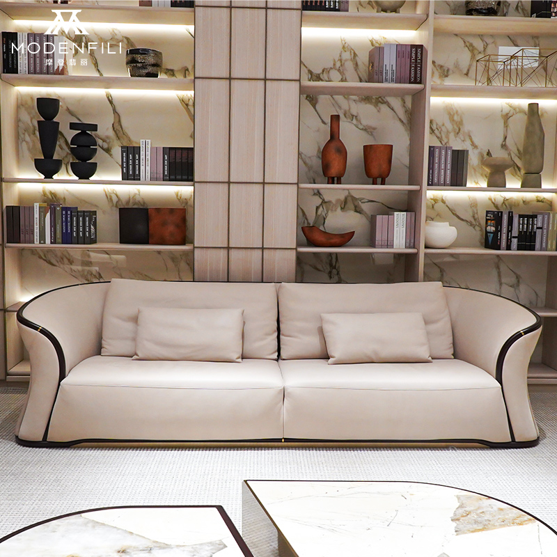 MODENFILI SM002 - Elegant Cream Sectional Sofa for Modern Living Spaces