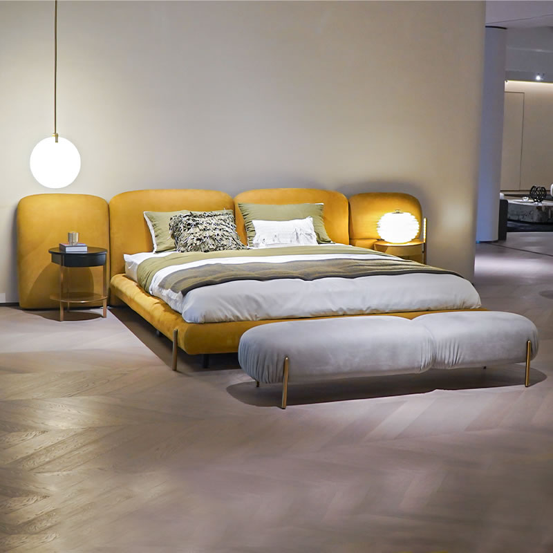 Step into a world of opulence and contemporary design with the V2209B2 mustard yellow velvet bed. This exquisite piece of furniture is a testament to modern luxury, featuring a plush velvet headboard in a vibrant mustard hue that instantly adds warmth and personality to your bedroom.