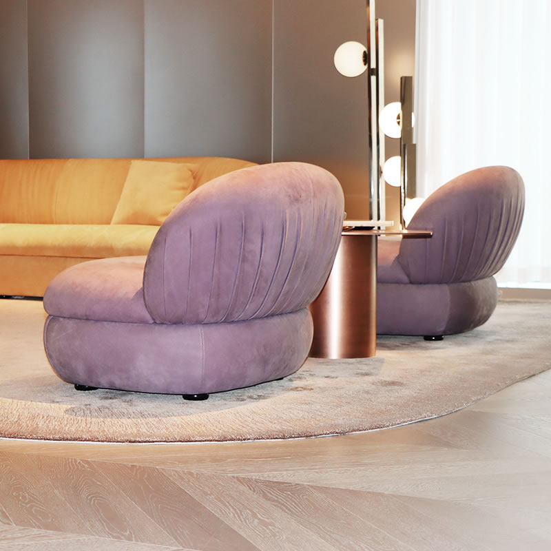 The V2222SF13 chair is designed with a swivel base that allows for easy movement, making it a versatile addition to your living room, lounge, or reading nook. Its round shape and smooth lines contribute to a contemporary aesthetic that complements various interior styles.