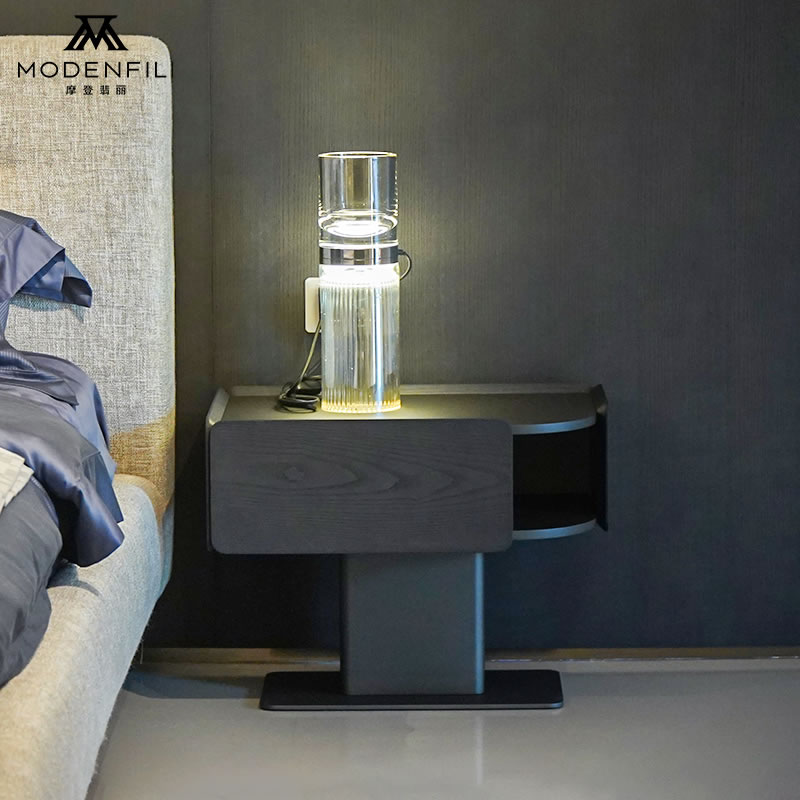 Transform your bedroom with the S3319B3 modern nightstand, a perfect blend of minimalist design and practical functionality. This nightstand features a sleek, dark wood finish that adds a touch of sophistication and warmth to your space. The clean lines and modern aesthetic make it a versatile piece for any contemporary bedroom.