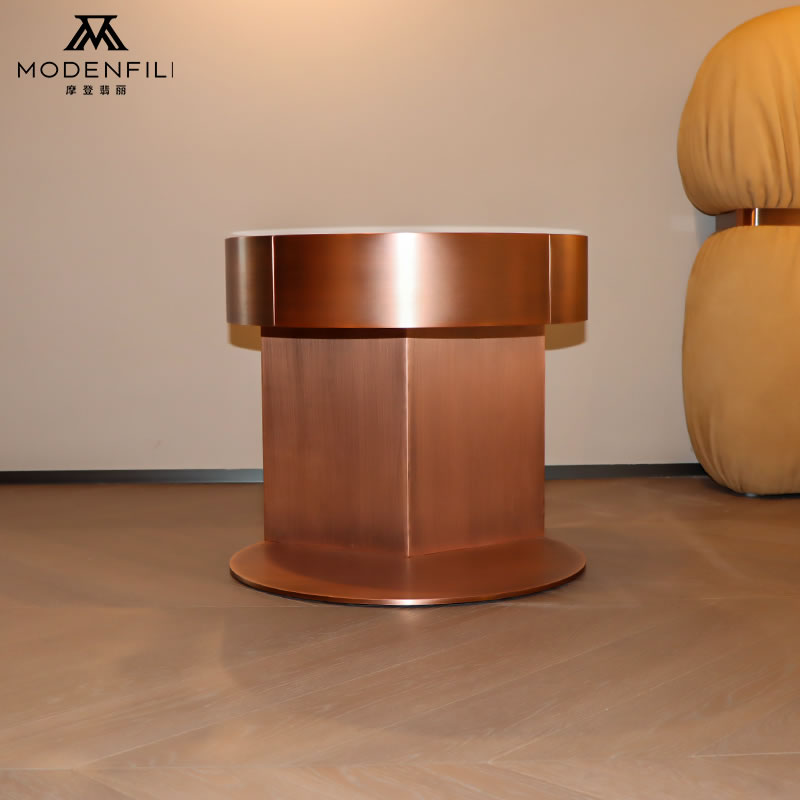 Add a touch of modern luxury to your bedroom with the V2222B3 copper nightstand. This nightstand features a stunning copper finish that exudes warmth and sophistication, making it an ideal accent piece for any contemporary bedroom. Its round shape and sleek design complement a variety of interior styles, from minimalist to eclectic.