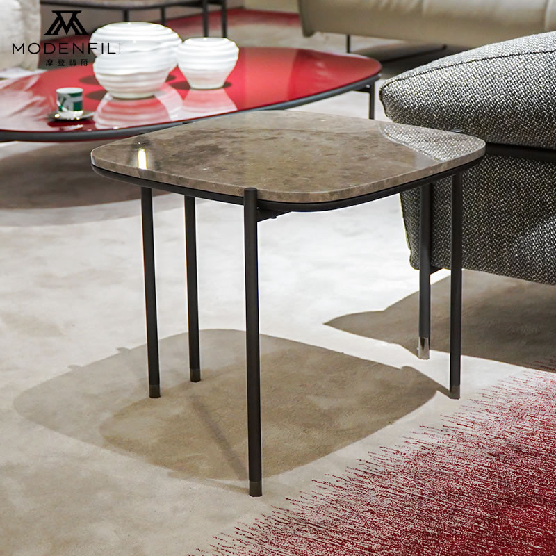 The S3306H3-3 modern marble side table is designed to bring a touch of luxury and elegance to your living space. This table features a beautiful marble top with natural patterns that add a unique and sophisticated look to your room. The dark, sturdy metal legs provide a sleek contrast, enhancing the table's modern appeal.