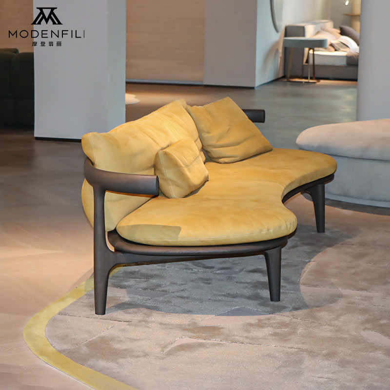 Add a burst of color and modern style to your living space with the V2223SF6 chaise lounge. This sofa features a vibrant yellow upholstery that brings energy and warmth to any room. The sleek design of the chaise lounge, combined with its dark wooden frame, creates a striking contrast that enhances the overall aesthetic of your interior.