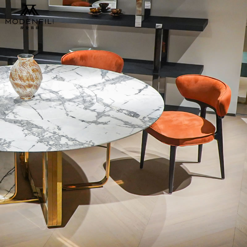 Elevate your dining experience with the MODENFILI V2228D6 modern velvet dining chair. This chair features a comfortable velvet seat and backrest in a vibrant rust color, paired with sleek black legs for a contemporary look. Designed for both comfort and style, the V2228D6 is perfect for modern dining rooms, adding a pop of color and a touch of luxury. Its ergonomic design ensures a comfortable seating experience, making it ideal for family meals, dinner parties, or even as an accent chair in your living space. Bring a sense of sophistication and warmth to your home with the MODENFILI V2228D6 dining chair.