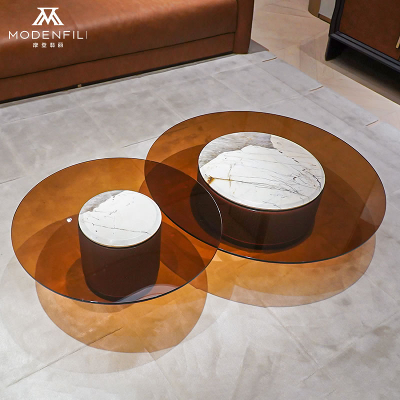 Add a contemporary touch to your living room with the MODENFILI SM009 nesting coffee table set. This set includes two tables that can be used together or separately, offering versatility and style. The tables feature a sleek design with a combination of marble and glass tops, resting on a sturdy wooden base with a rich brown finish. The SM009 set is perfect for creating a cohesive look in your living space, providing ample surface area for decorative items or daily essentials. Its modern aesthetic and practical design make it an ideal choice for those looking to update their home decor. Enhance your living area with the MODENFILI SM009 nesting coffee table set, where form meets function.