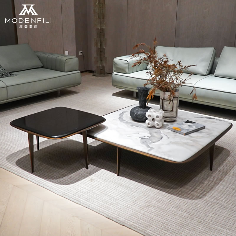 The MODENFILI V2218H3-2 minimalist black glass coffee table is a perfect addition to any modern living space. This table features a sleek black glass top that offers a smooth and reflective surface, enhancing the minimalist aesthetic of your room. The table is supported by elegant, slender legs that provide a sturdy foundation while maintaining a clean, uncluttered look. The V2218H3-2 model is ideal for those who appreciate simplicity and modern design. It offers a functional and stylish surface for placing decorative items, books, or beverages, making it an excellent centerpiece for your living room. Add a touch of sophistication to your home with the MODENFILI V2218H3-2 coffee table, where form meets function in a minimalist design.