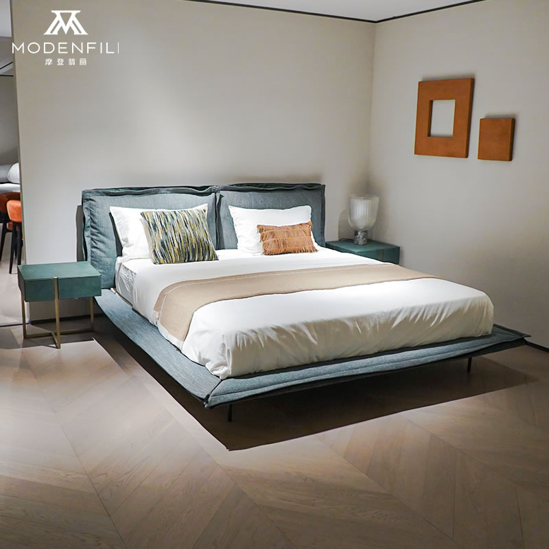 The MODENFILI V2229B1 contemporary queen size bed is designed to bring a sense of modern comfort and style to your bedroom. This bed features a plush, tufted headboard upholstered in a sophisticated dark teal fabric, complemented by a sleek, low-profile base that adds to its contemporary appeal. The V2229B1 model is crafted with attention to detail, ensuring a comfortable and supportive sleeping experience. Its elegant design makes it a perfect addition to any modern bedroom, offering a serene and inviting atmosphere for rest. Transform your sleeping space with the MODENFILI V2229B1 bed, where modern design meets luxurious comfort.
