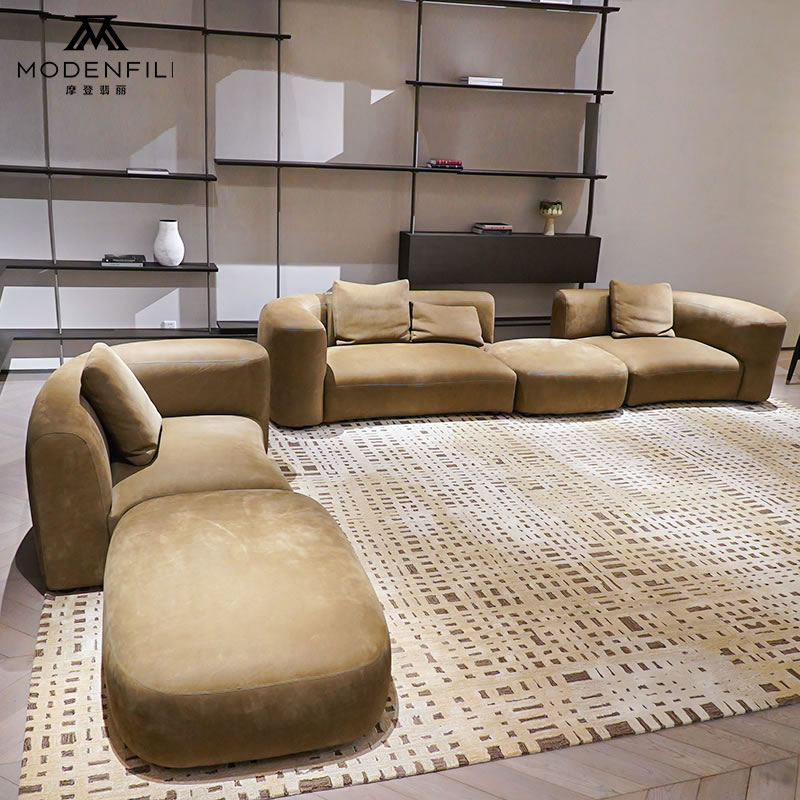 Upgrade your living room with the MODENFILI V2205 modern sectional sofa, designed for both comfort and style. This sectional sofa features a plush, tan upholstery that adds warmth and sophistication to your space. The V2205 model is crafted with a contemporary design that includes ample seating and soft, supportive cushions, making it perfect for lounging, entertaining, or simply relaxing at home. Its modular design allows for flexibility in arrangement, fitting well in various room layouts. The MODENFILI V2205 sofa offers a luxurious seating experience that enhances the aesthetic of any modern living area. Discover the perfect blend of comfort and design with the MODENFILI V2205 sectional sofa.