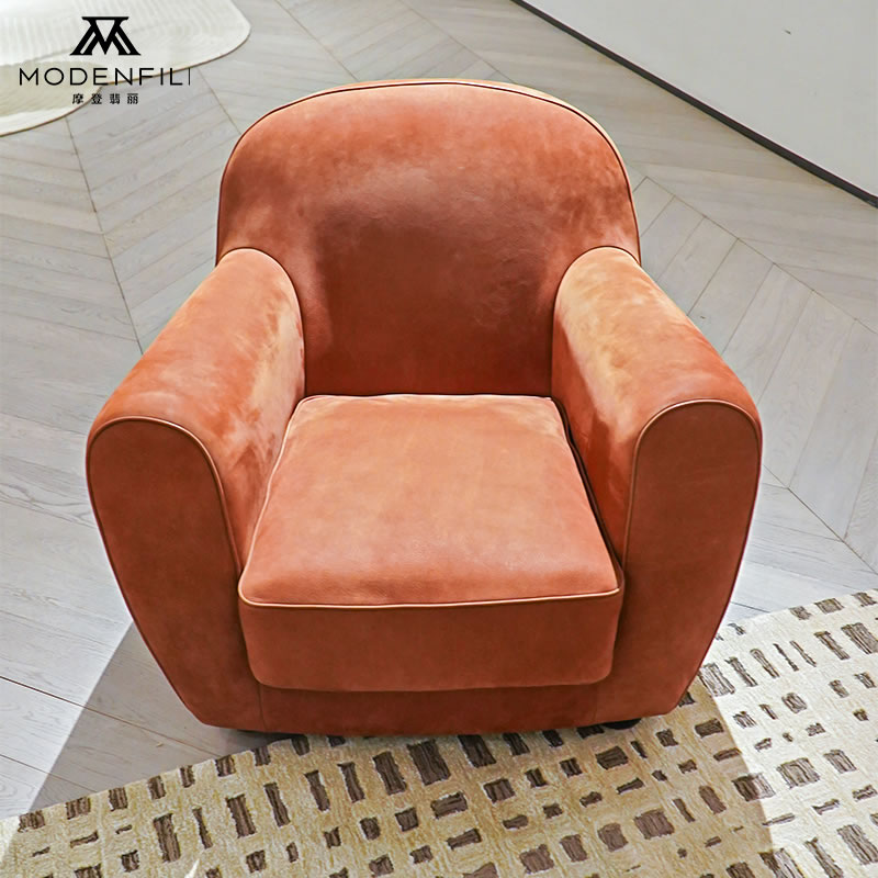 Bring a vibrant and cozy element to your living room with the MODENFILI V2220SF13 modern rust orange swivel chair. This chair features a plush, rust orange upholstery that adds warmth and a pop of color to any interior, paired with a stylish design that includes a comfortable cushioned seat and supportive backrest. The V2220SF13 model is equipped with a swivel base, allowing for easy movement and making it perfect for lounging, reading, or simply relaxing at home. Its eye-catching color and modern design make it an ideal choice for those looking to enhance the aesthetic of their living area. Experience the perfect blend of comfort and style with the MODENFILI V2220SF13 swivel chair.