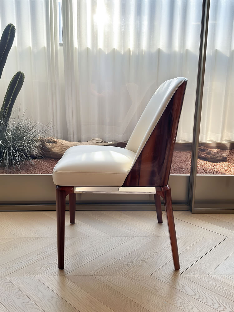The MODENFILI M9909D6 dining chair is a fusion of classic and contemporary design elements, offering a sophisticated and inviting seating option for any modern dining space. This cream upholstered chair features a warm, neutral tone that effortlessly complements a variety of color schemes, while its wooden legs add a touch of natural elegance.Designed with comfort and style in mind, the M9909D6 boasts a plush, cream-colored upholstery that provides a soft and comfortable seating surface. The chair's sleek lines and minimalist design make it a versatile piece that can adapt to both formal and casual dining settings. The wooden legs, with their dark finish, not only provide sturdy support but also contribute to the chair's overall aesthetic appeal.