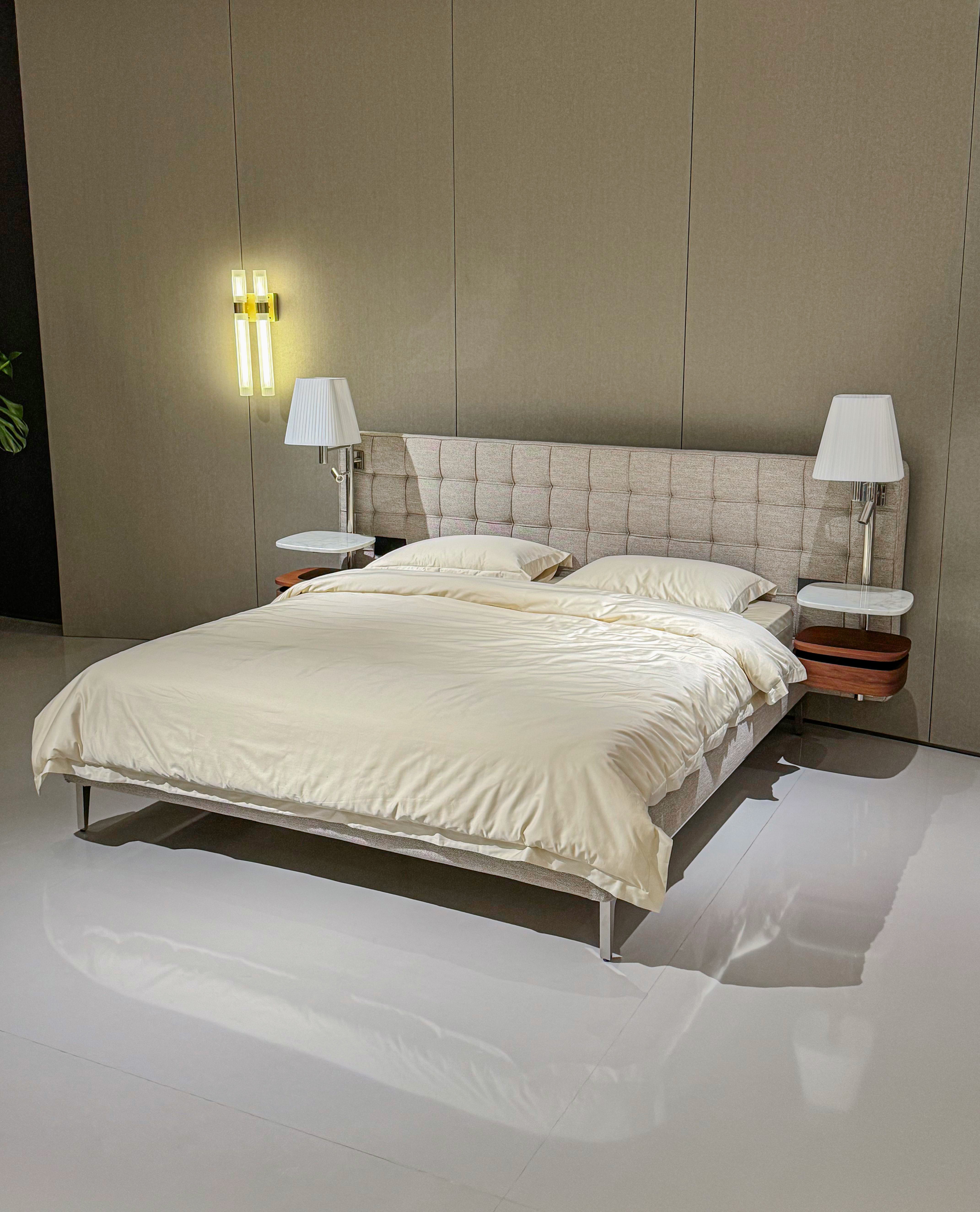 This Modern Tufted Headboard Bed is a stunning centerpiece for any bedroom, crafted with premium upholstered fabric and a meticulously tufted headboard that exudes luxury and sophistication. The sleek design, combined with sturdy metal legs, ensures both aesthetic appeal and long-lasting durability. Ideal for creating a serene and stylish sleeping space, this bed seamlessly blends modern minimalism with plush comfort. Whether you’re revamping your master bedroom or designing a chic guest room, this bed offers a perfect balance of form and function. Its neutral tone and elegant silhouette make it adaptable to various interior styles, from contemporary to transitional, while the tufted detailing adds a touch of timeless elegance. Invest in this bed to transform your bedroom into a luxurious retreat where style and comfort converge effortlessly.