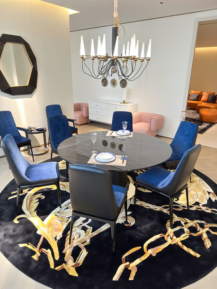 MODENFILI M9915D1-1 - Modern Round Marble Dining Table with Luxurious Chairs