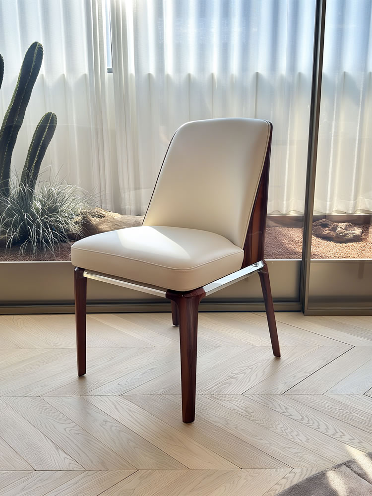 MODENFILI M9909D6 - Cream Upholstered Modern Dining Chair with Wooden Legs
