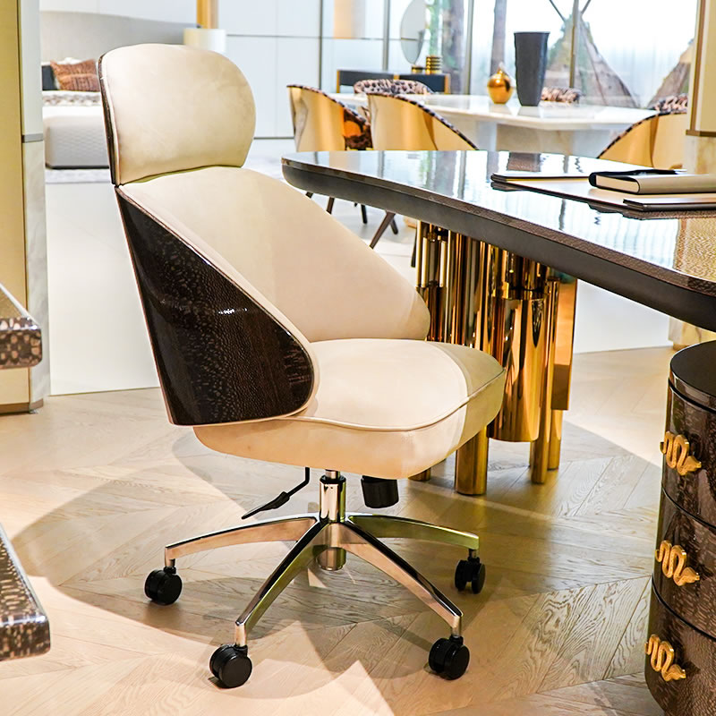 M9915SF11 Swivel Office Chair: Beige Leather with Ergonomic Design for Comfort