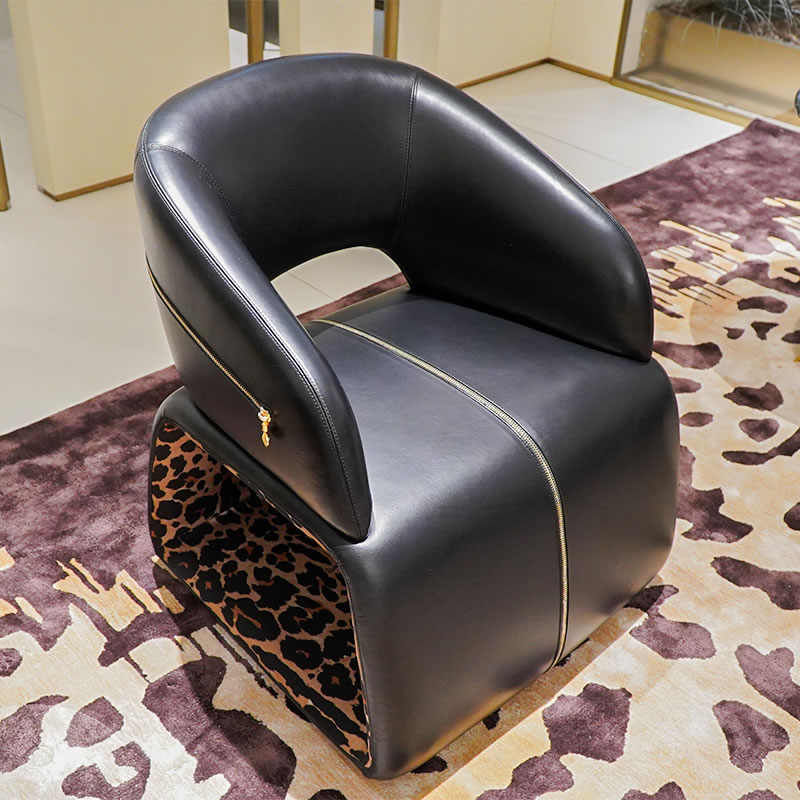 M9920SF13 Modern Black Leather Armchair with Unique Gold Accents