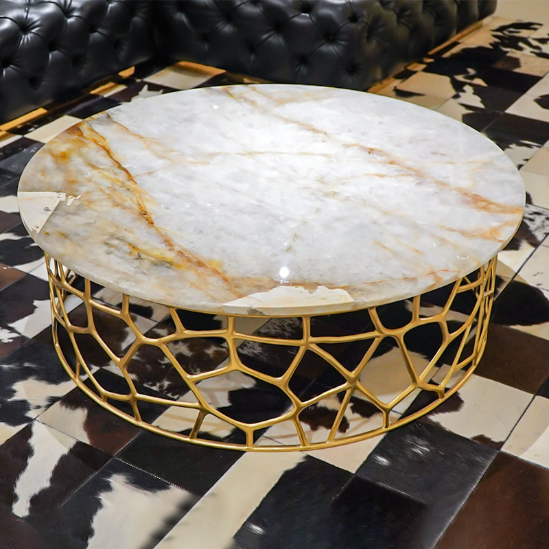 Luxury Round Marble Coffee Table M9918H1 with Gold Metal Base