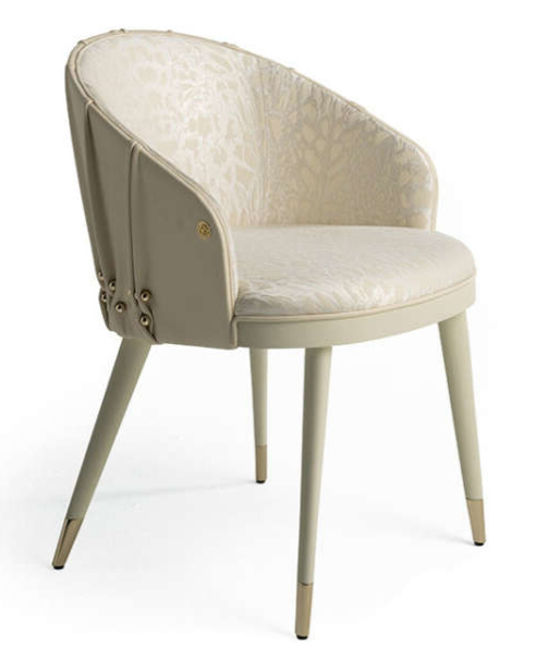 Modern Cream Fabric Dining Chair M9918D5 with Unique Pattern and Gold Details