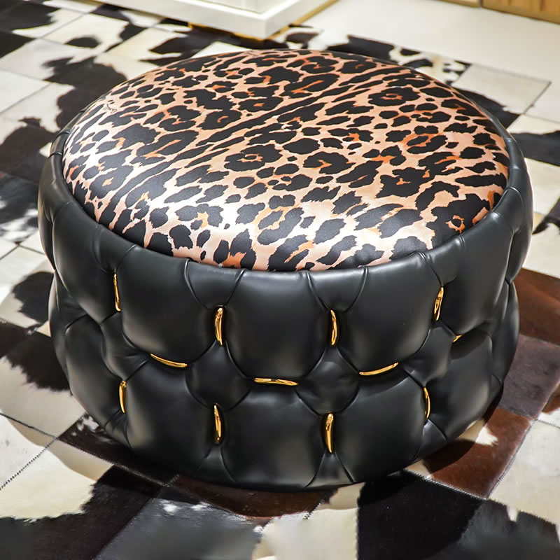 Stylish Leopard Print Drum Stool M9918SF11 with Gold Accents