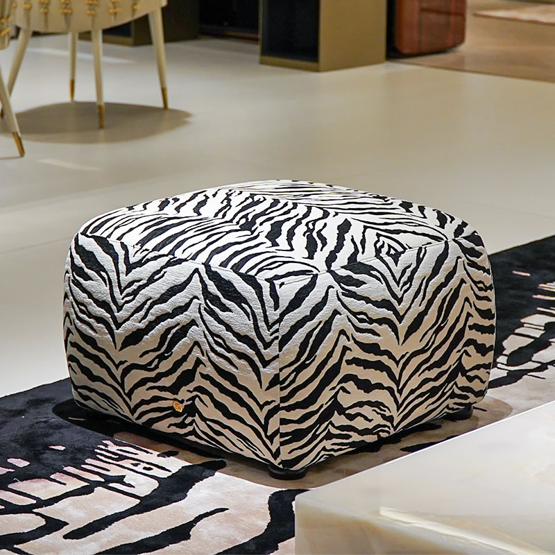 Modern Zebra Print Drum Stool M9919SF11 with Cushioned Top and Sturdy Base