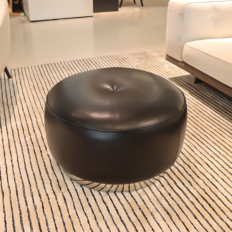 S6629SF11-3 Round Footrest: Black Leather Ottoman for Modern Living Rooms
