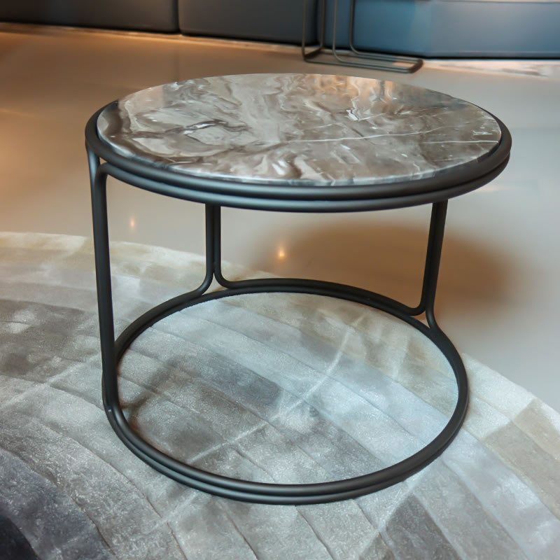 Modern Round Side Table S3302H3-2 with Marble Top and Black Metal Frame