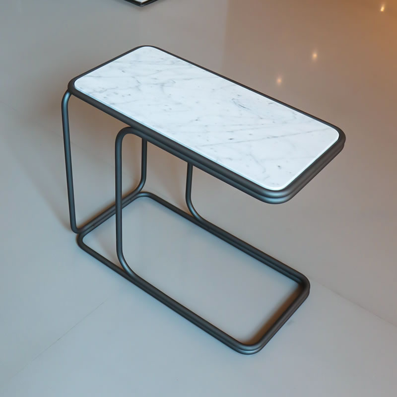Modern Rectangular Side Table S3302H4 with Marble Top and Black Metal Frame