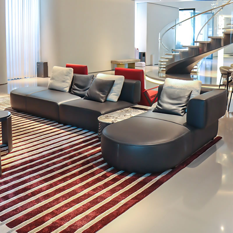 Modern Black Leather Sectional Sofa S3317 with Modular Design