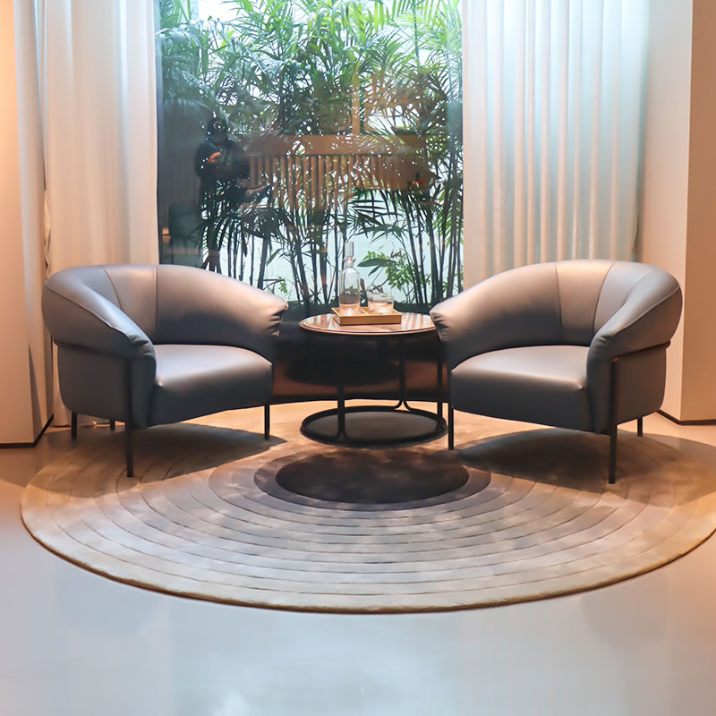 Modern Grey Leather Armchairs S3306SF11 with Round Design and Metal Legs