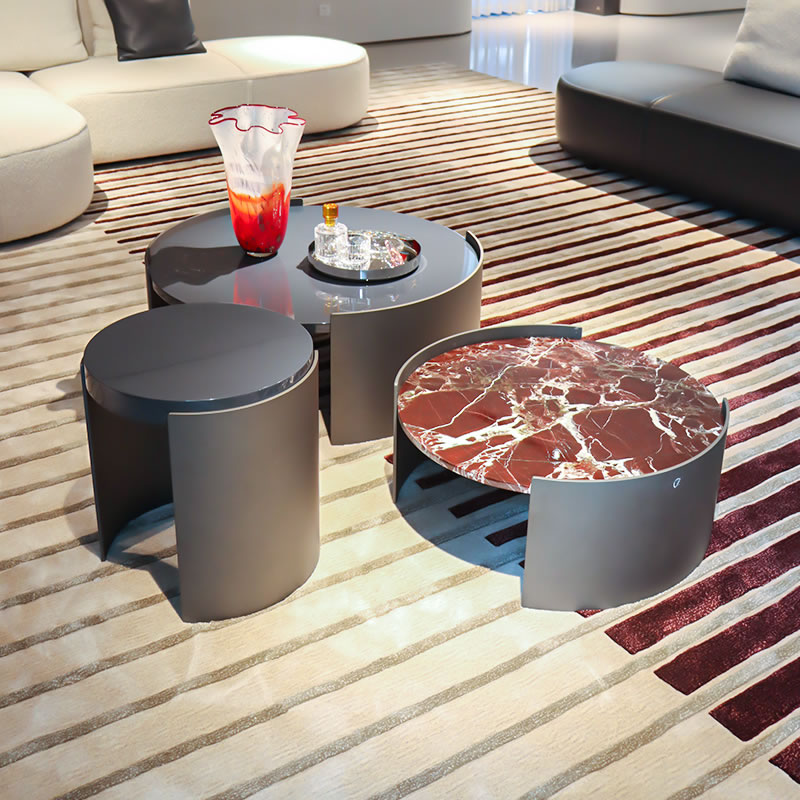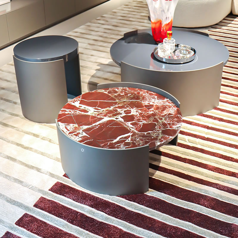 Contemporary Nesting Coffee Tables S3317H3-2 with Red Marble Top