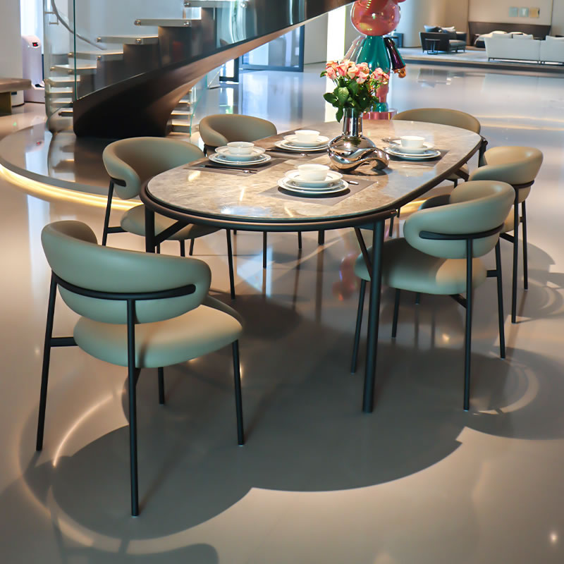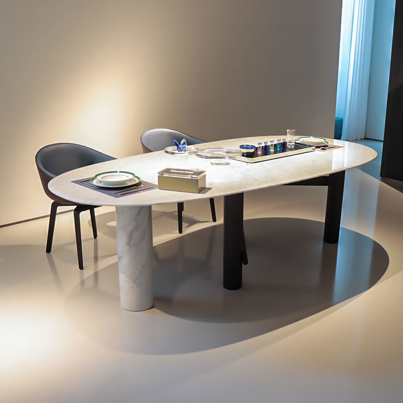 Modern Oval Marble Dining Table S3306D2 with Black Metal Base